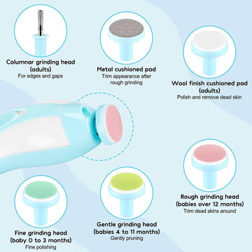 BABY-SAFE DESIGN: Gentle sandpaper heads specifically designed for different growth stages protect delicate infant nails.