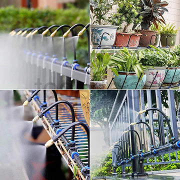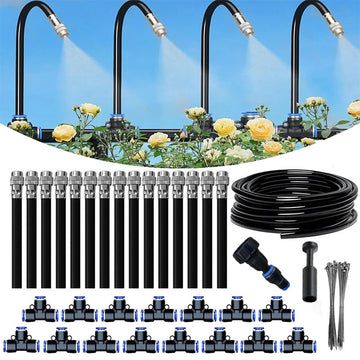 This irrigation kit includes tubing that divides into several channels, distributing water evenly and improving flow pressure. Delivers moisture directly to roots and helps reduce water use by up to 70%. Suitable for flower beds, vegetable plots, potted plants, and cooling during warmer weather.