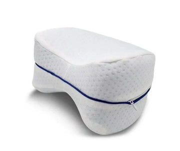 This compact knee pillow is contoured to rest between the legs during side sleeping and is designed to support alignment of the lower back, hips, and knees. The form helps minimize contact pressure by elevating one leg and stabilizing the lower body position. The internal structure maintains shape while conforming to natural leg contours. A removable fabric cover provides a washable surface, and the compact build allows for easy relocation around the home or while traveling. The structure is suitable for use during sleep or rest periods when consistent leg positioning is desired.