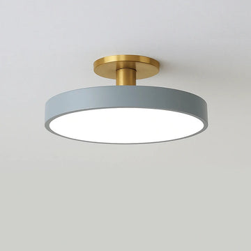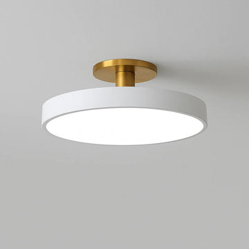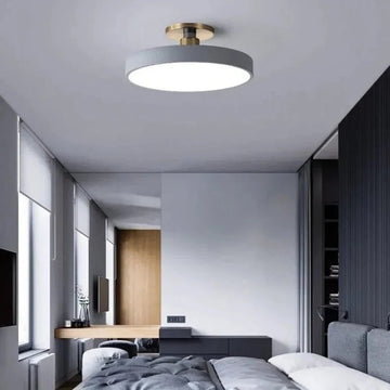This circular LED ceiling light features a flush-mounted structure with a smooth surface and warm light output, intended for use in various interior spaces. Available in multiple sizes and wattages, the unit offers consistent overhead lighting with a neutral profile suited for dining areas, bedrooms, and general indoor placement.