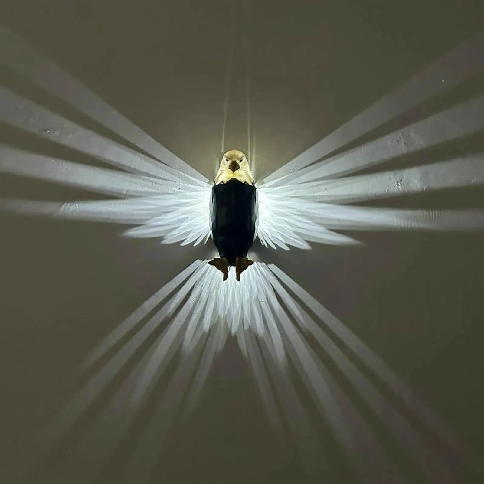 The lighting creates a controlled glow that helps define the shape of the eagle design. This supports a consistent level of light without overpowering surrounding elements. It is appropriate for hallways, bedrooms, or living areas where modest lighting is preferred.