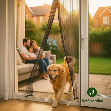 Just walk right through the screen, and the magnets do all the work. The mesh panels split down the middle when you push through them. Once you're through, they snap back together on their own, just like magic.