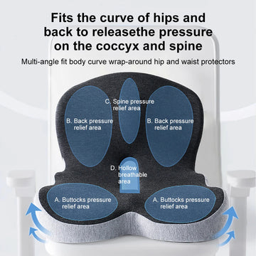 Upgrade your seating comfort with our ergonomic seat cushion featuring a one-piece design that supports both your hips and waist. Designed with a smooth L-shaped curve, this cushion aligns perfectly with your body, relieving pressure from your lower back and tailbone. Whether you are working at a desk, studying, or commuting, it offers lasting support throughout the day.