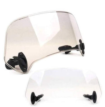 This windshield extension is designed to reduce wind impact and noise while riding. It attaches to existing motorcycle windshields and provides an added layer of wind deflection for improved comfort and visibility during travel.