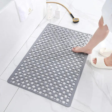 This non-slip shower mat is designed to support stability and hygiene in wet environments. Built with a drainage surface and flexible structure, the mat helps maintain a dry top layer while reducing the risk of slippage on smooth floors. The integrated suction cup base provides reliable grip, while the soft upper texture offers support during use. Its structure is suited for routine bathroom placement and can be repositioned as needed without difficulty.