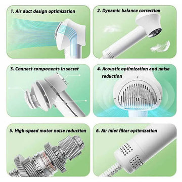 ULTRA QUIET 40,000 RPM MOTOR: Six layered noise reduction technologies keep sound low while pushing air at 59 feet per second.