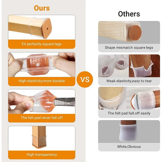 These square chair leg protectors are designed to safeguard your floors from scratches, dents, and scuffs caused by everyday furniture movement. They provide a secure layer of protection that helps maintain the original appearance of hardwood, tile, laminate, or vinyl flooring. By reducing impact and friction, they extend the life of your surfaces while keeping your home or office looking well-kept.