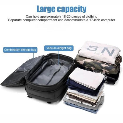 The built-in compression mechanism ensures packed items remain compact and secure, reducing volume without compromising accessibility. It allows for efficient organization, making it easier to manage various belongings during travel.