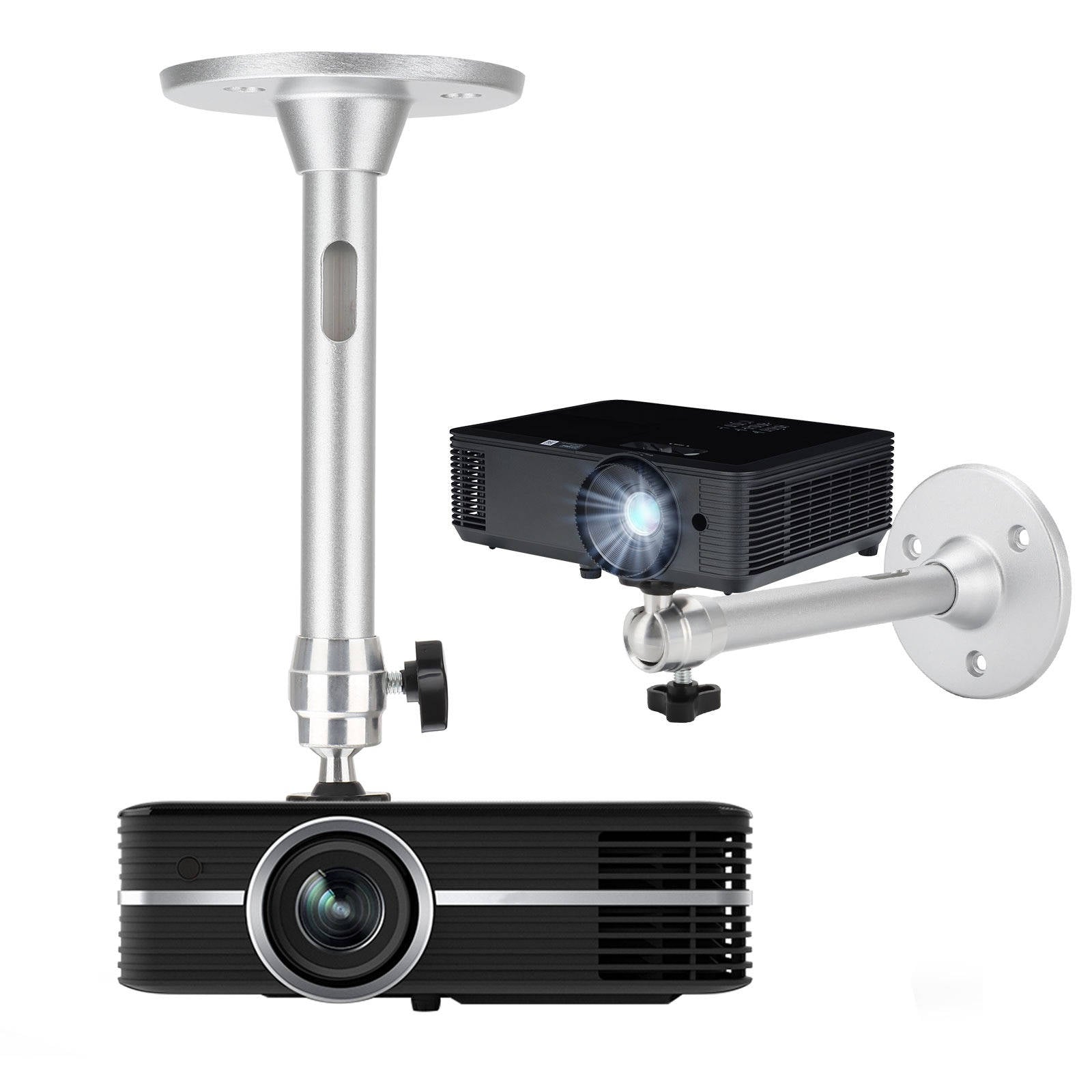 It holds up to 11 pounds with an aluminum build that doesn't budge once it's up. The adapters stretch out 7.08 in and fit different projector brands and sizes without trial and error. The 360 degree joint lets you get the angle just right.