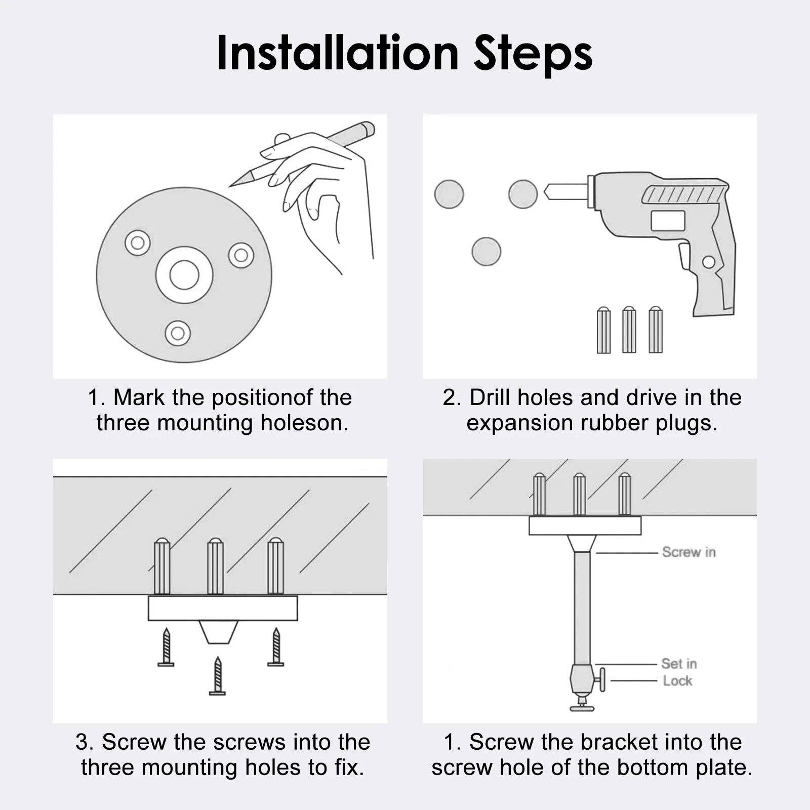 You pick ceiling, wall, or floor mounting, then bolt the aluminum bracket up with the screws they send. Three different adapters fit most projectors without searching for extras. You turn the knob and tilt things until the picture lands square where you want it.