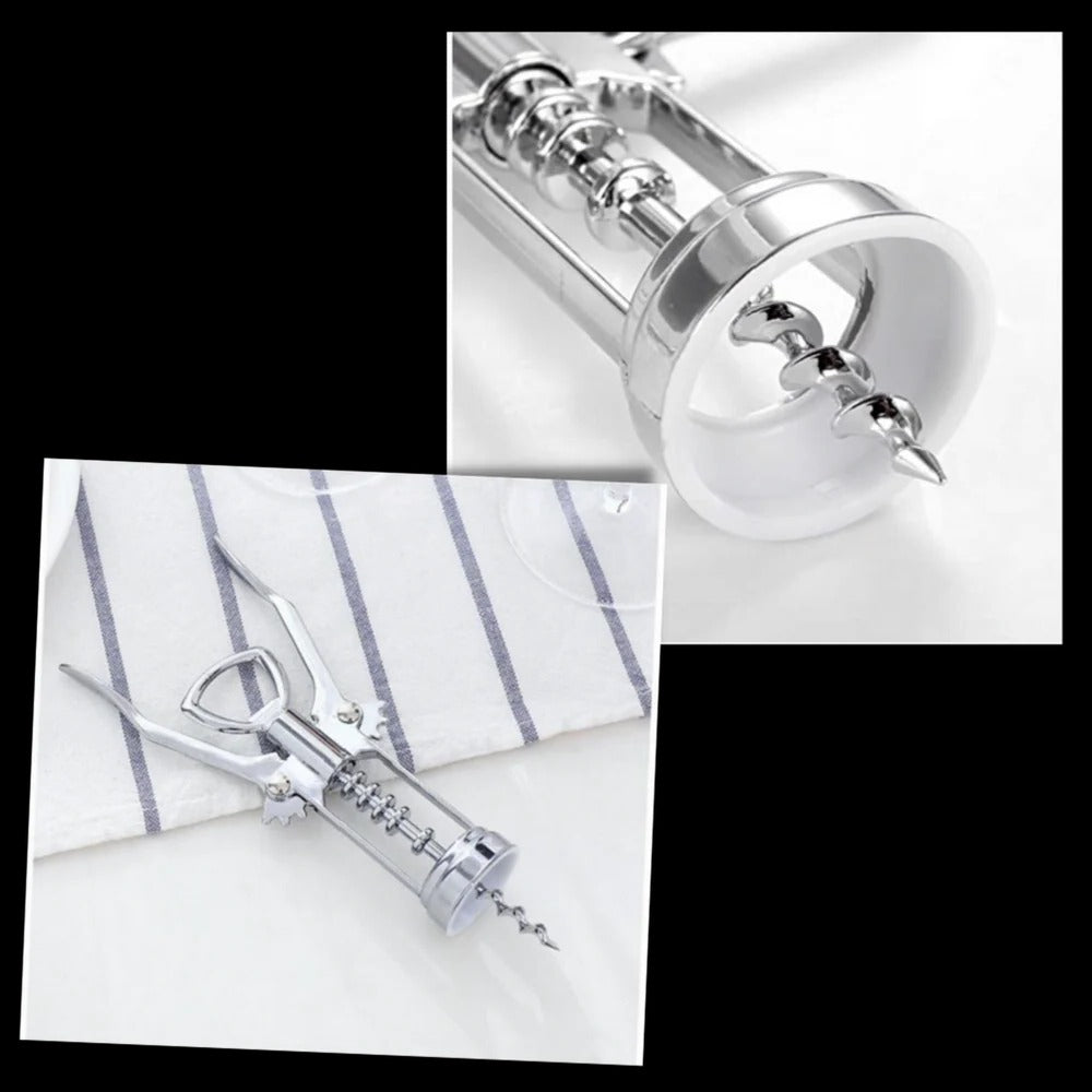 This wine opener features a classic French style with a sleek silver finish that complements any bar or kitchen decor. Its elegant design ensures it remains stylish for years, making it an ideal gift for wine enthusiasts. Whether for daily use or as a special gift, this wine opener combines both functionality and aesthetic appeal.